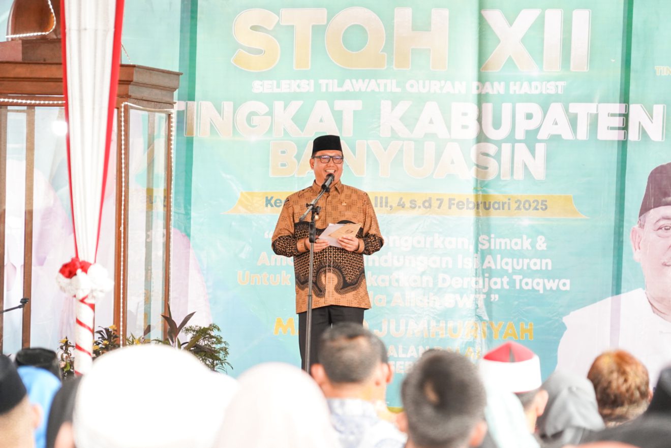 PukaNews.com, BANYUASIN — Gelaran Seleksi Tilawah Al-Qur’an dan Hadits (STQH) ke-XII Tahun 2025 Kabupaten Banyuasin yang digelar di Masjid Jumhuriah Pangkalan Balai Resmi ditutup Penjabat Bupati Banyuasin Muhammad Farid, Sabtu (07/02).