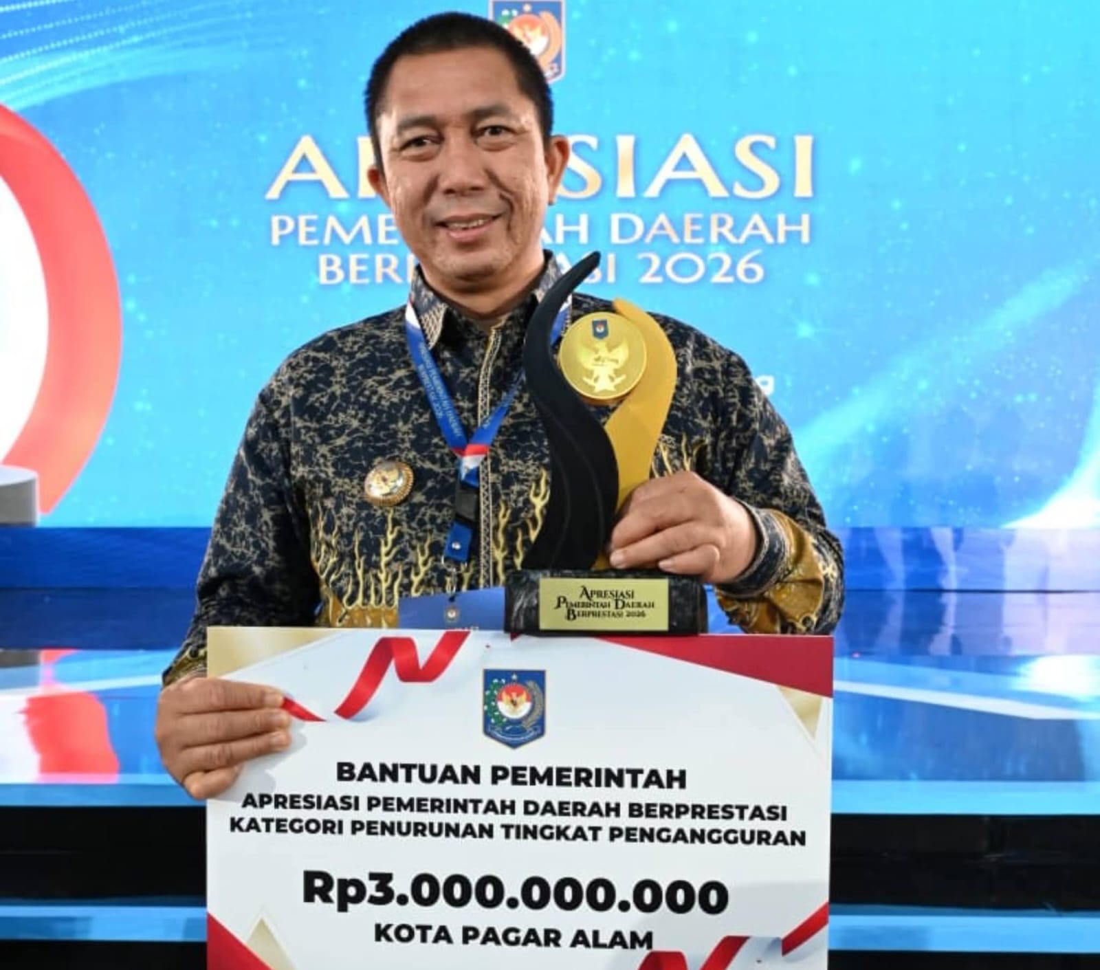 PukaNews.com, Palembang — Kementerian Dalam Negeri (Kemendagri) memberikan penghargaan kepada Pemerintah Kota (Pemkot) Pagar Alam atas keberhasilan menurunkan angka pengangguran secara signifikan.