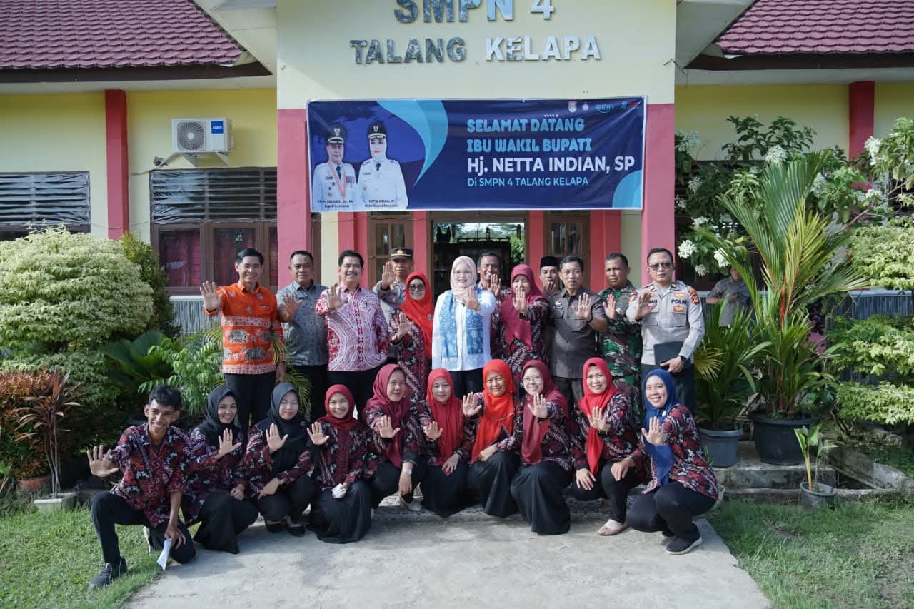 TALANG KELAPA, PUKANEWS.COM — Dalam rangka mendukung pencegahan narkoba sekaligus sebagai Ketua Badan Narkotika Kabupaten (BNK) Banyuasin. Wakil Bupati Banyuasin Netta Indian, S.P. secara langsung memberikan sosialisasi mengenai Pencegahan, Pemberantasan, Penyalahgunaan dan Peredaran Gelap Narkotika (P4GN) kepada siswa-siswi SMPN 4 Talang Kelapa. Kamis (27/11)