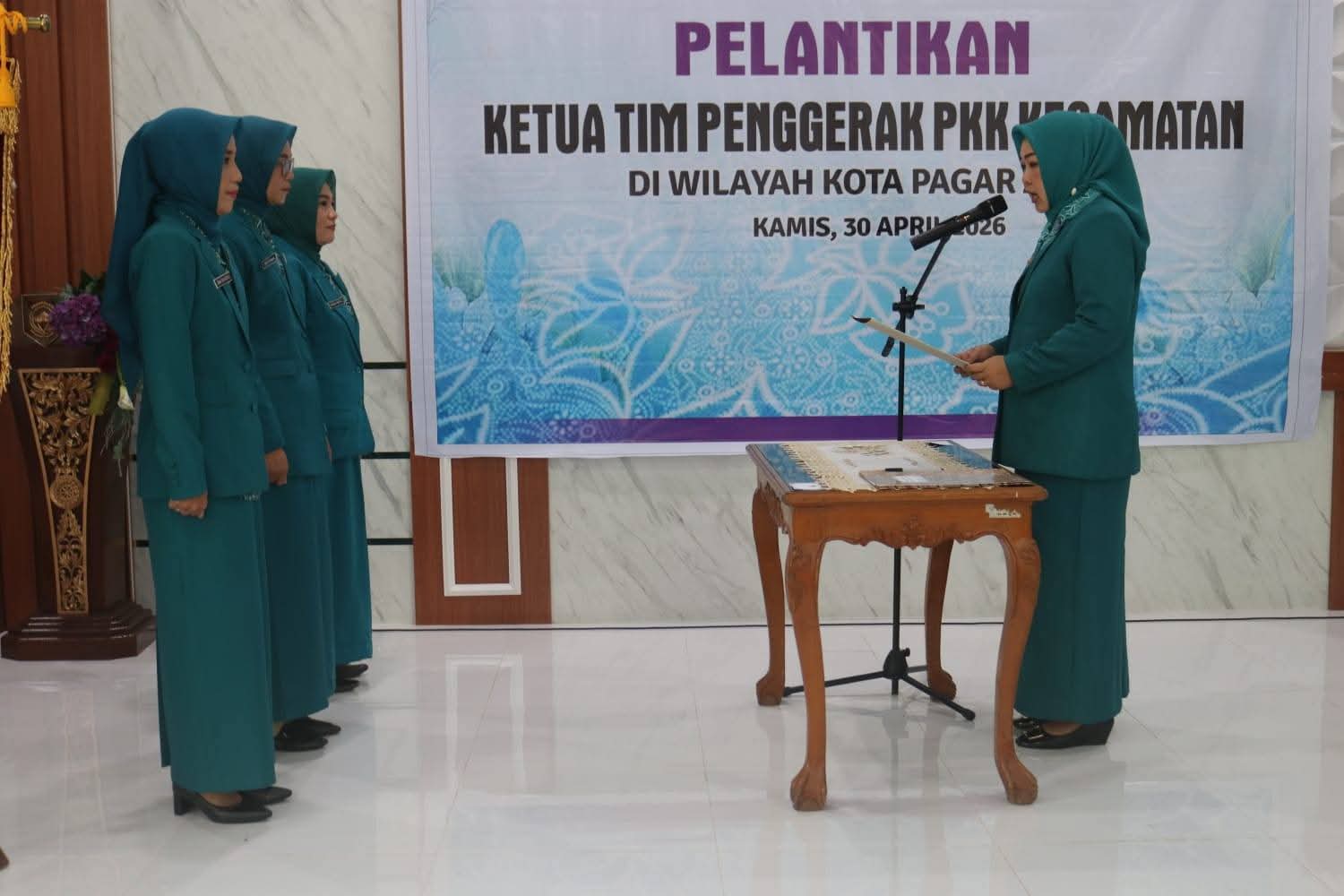 PukaNews.com, Pagar Alam — Sebanyak tiga Ketua TP-PKK Kecamatan di Kota Pagar Alam resmi dilantik oleh Ketua TP-PKK Kota Pagar Alam Hera Parianti Ludi, yang diselenggarakan di Gedung Pertemuan Rumah Dinas Walikota Pagar Alam pada Kamis, 30 April 2025.
