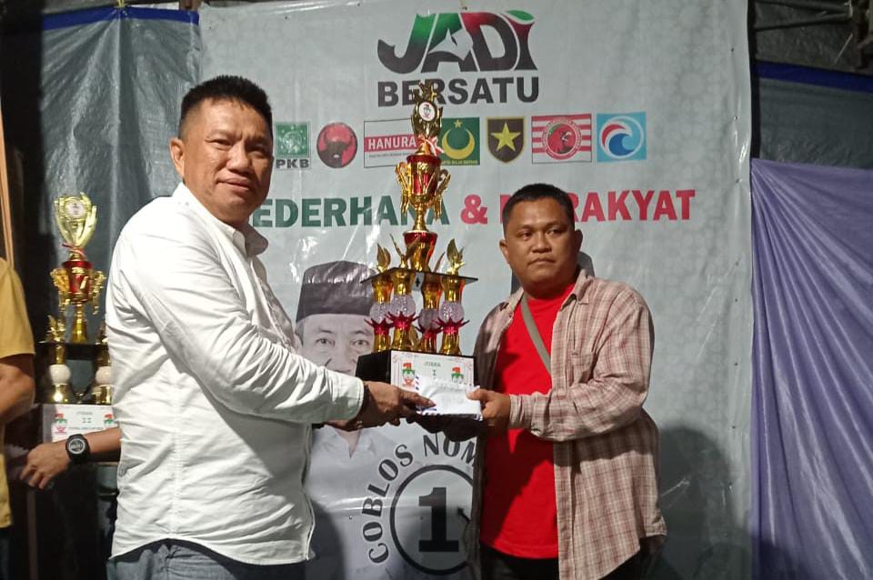 Calon Wakil Bupati OKI nomor urut 1, Abdiyanto Fikri, turut hadir menyerahkan piala dan uang pembinaan kepada para pemenang. Ia mengapresiasi inisiatif pemuda Kebon Cabe dan berjanji akan mendukung penuh pengembangan bakat anak muda jika terpilih.