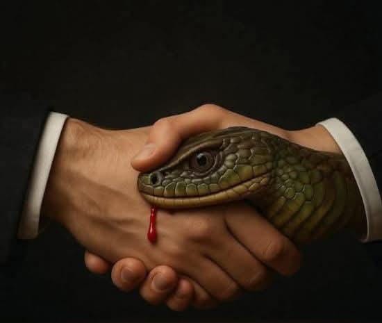 Reza hanya duduk diam, menatap foto mereka berdua yang sedang berjabat tangan. Tapi kini ia melihatnya dengan mata yang baru—di balik jabat tangan itu tersembunyi seekor ular, dan dari taringnya, menetes darah kepercayaan yang dikhianati.