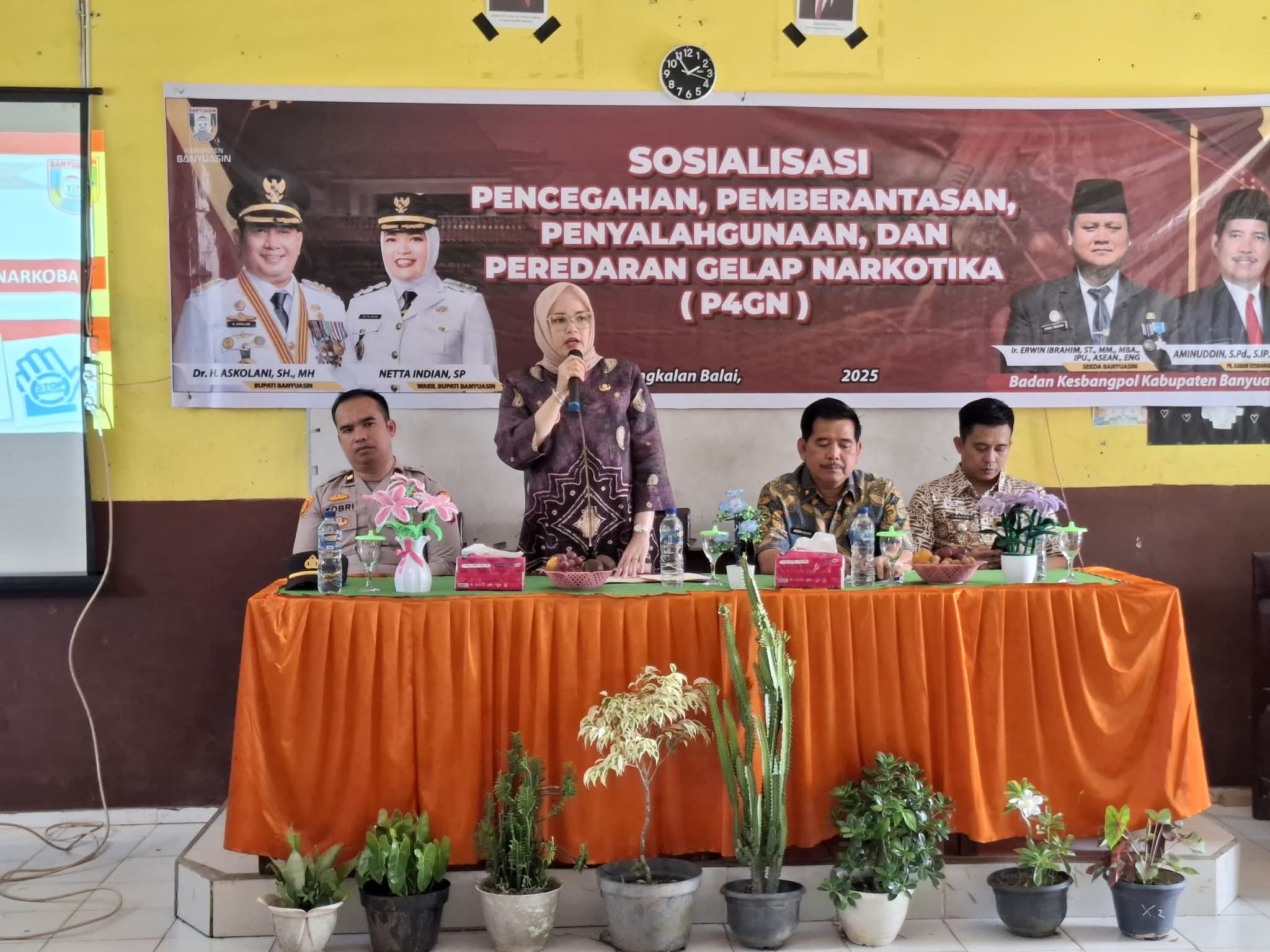 Pemerintah Kabupaten Banyuasin melalui Kesbangpol Banyuasin dan BNK bersama-sama bersinergi memerangi narkoba dan mengajak anak-anak untuk menghindari pergaulan yang mendekati penggunaan narkoba.